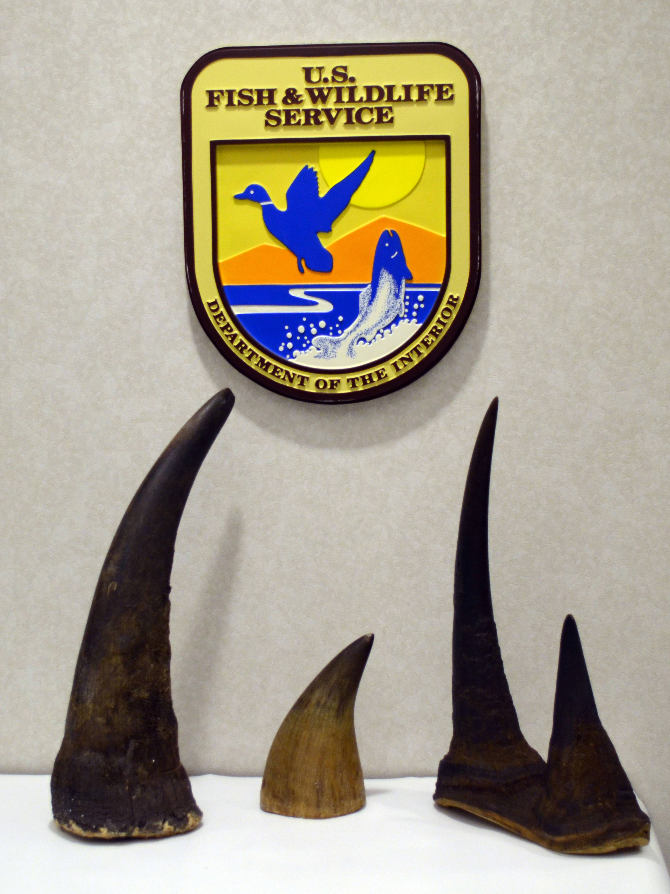 At the time of Hausman’s February 2012 arrest, USFWS agents confiscated six black rhino horns and four rhino heads from his apartment, along with “numerous carved and partially carved rhinoceros horns”, synthetic rhino horns and $28,000 in cash. Two of the rhino horns were the ones that Hausman was sawing off in the motel parking lot.