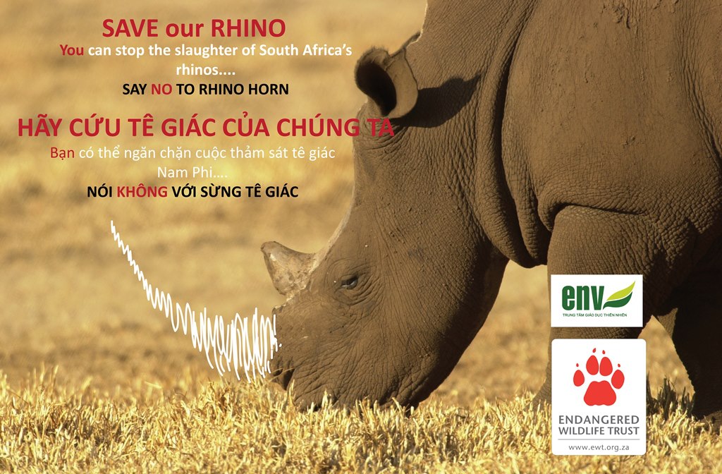 Education for Nature-Vietnam — a Vietnamese NGO — is leading the charge to stop the consumption of rhino horn with a campaign to increase negative social attitudes towards rhino horn users.